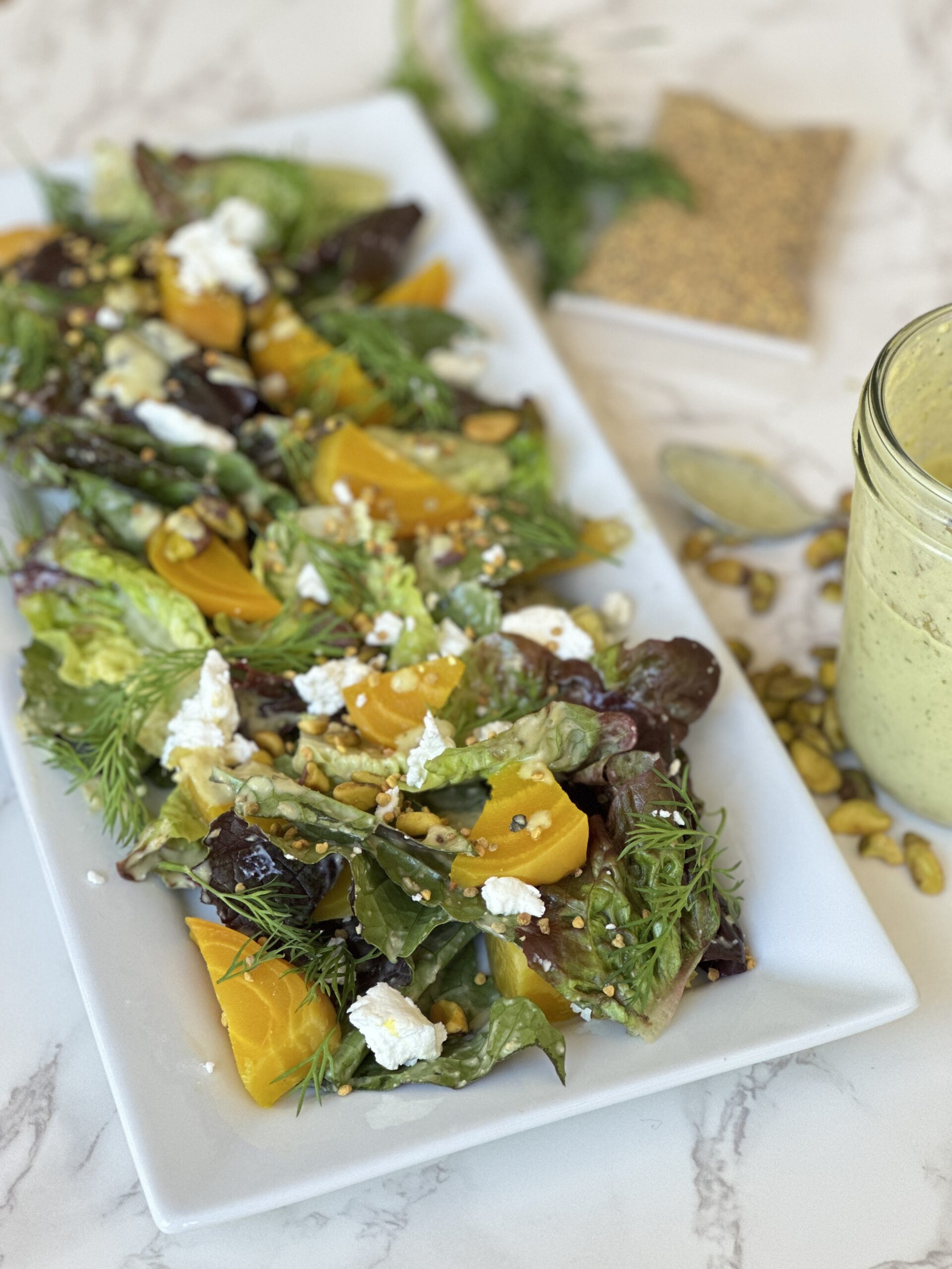 Beet, Dill and Goat Cheese Salad with Creamy Grapefruit Vinaigrette