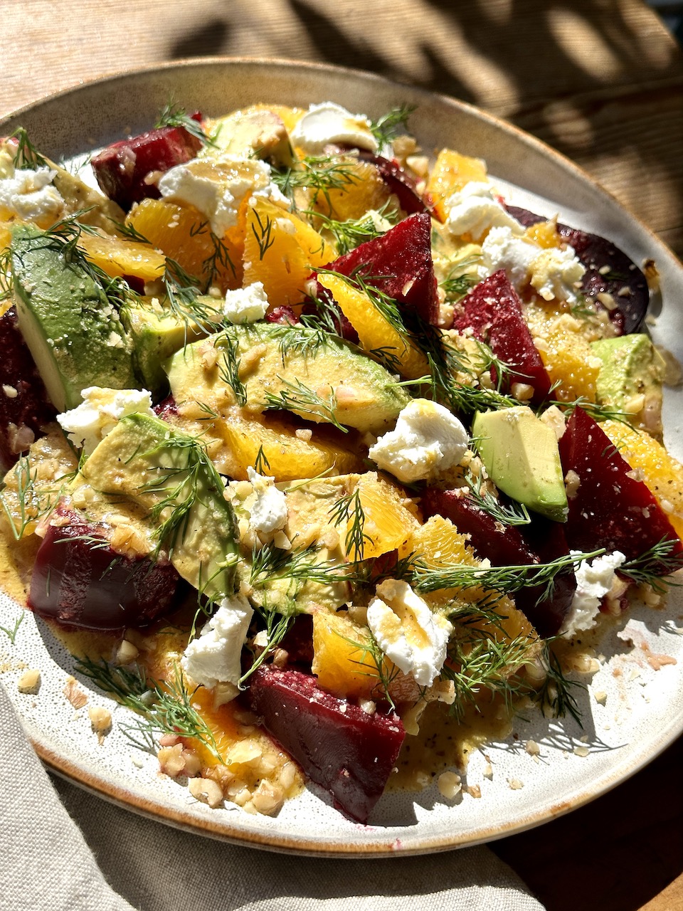 Beet, Orange, Avocado & Dill Salad with Walnut Vinaigrette