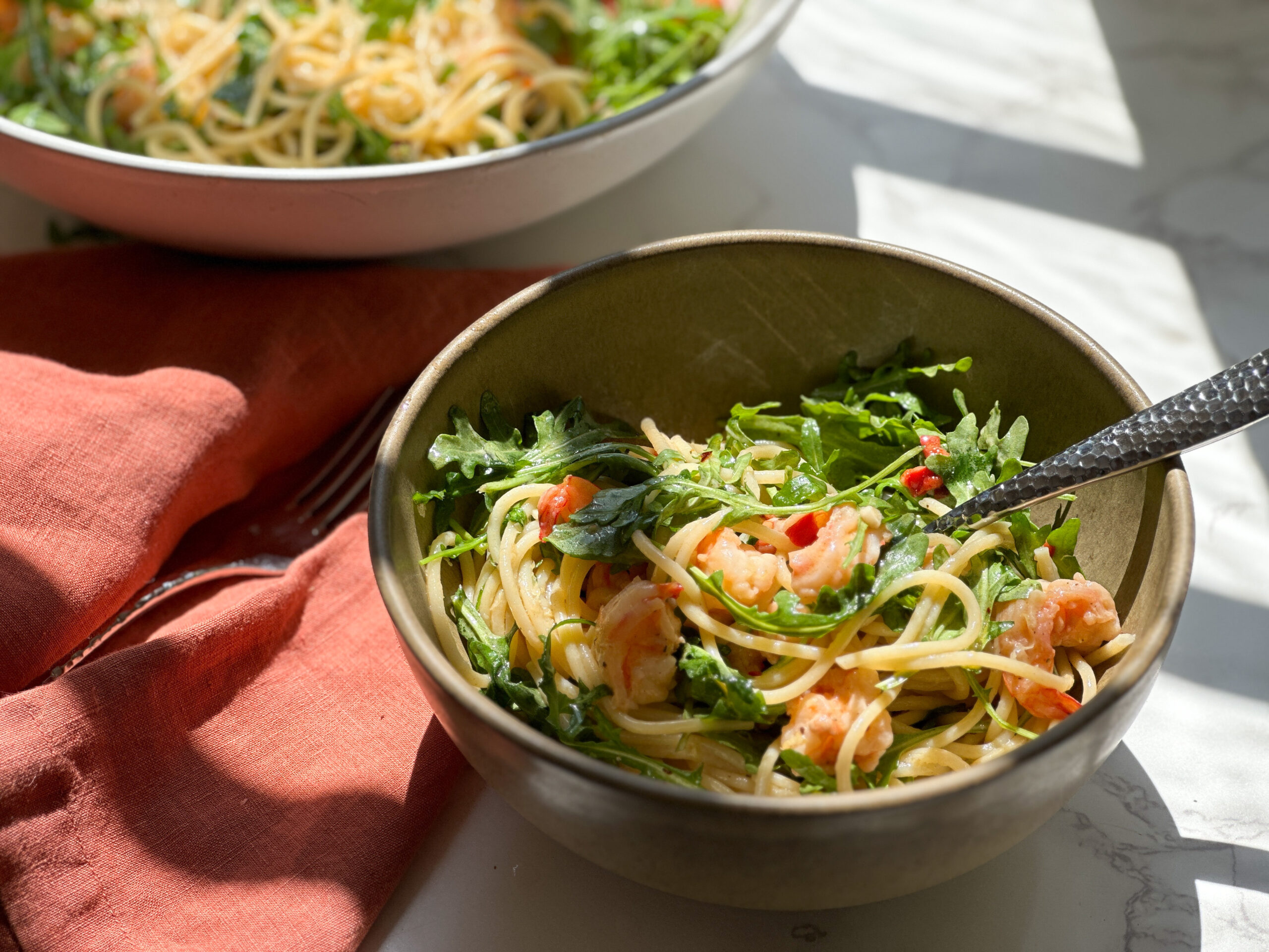 Chili Prawn Pasta with Arugula
