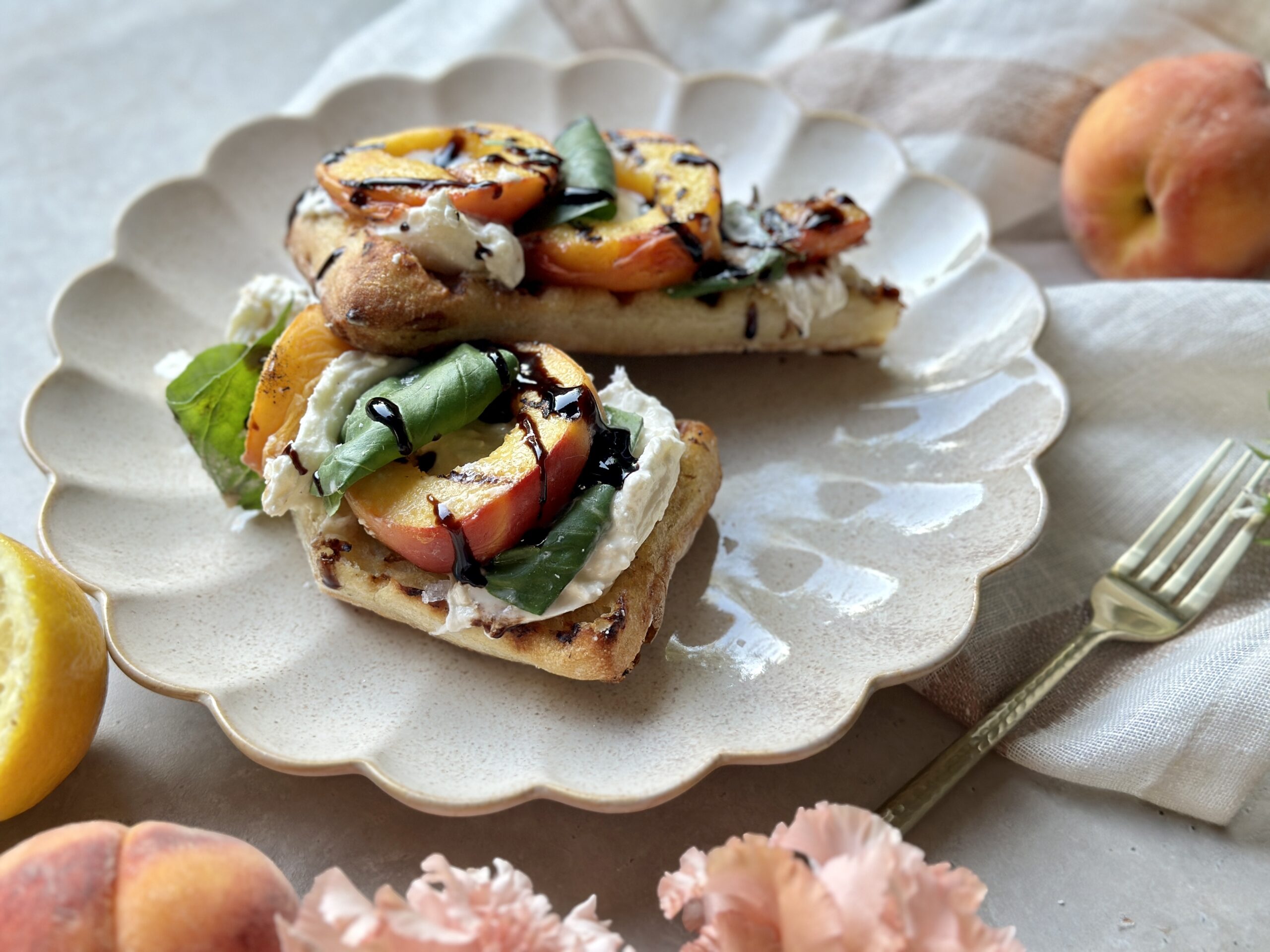 Why do basic when you can do better? Let’s elevate this popular summer recipe to a sizzling level. Here’s the new Peach and Burrata Toast, 2.0