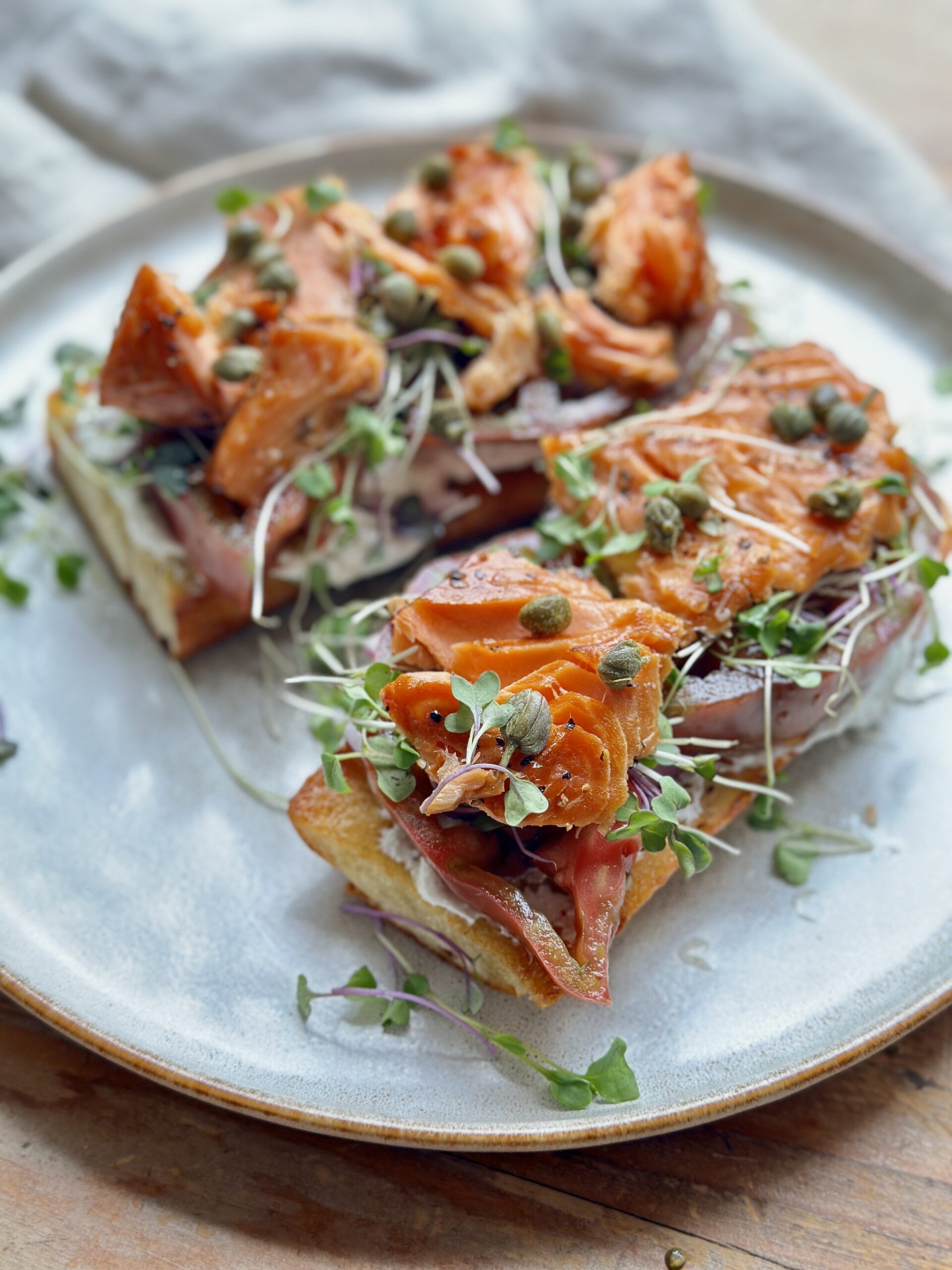 Well, this is my elevated toast recipe that will change the way you feel about salmon on a bagel.