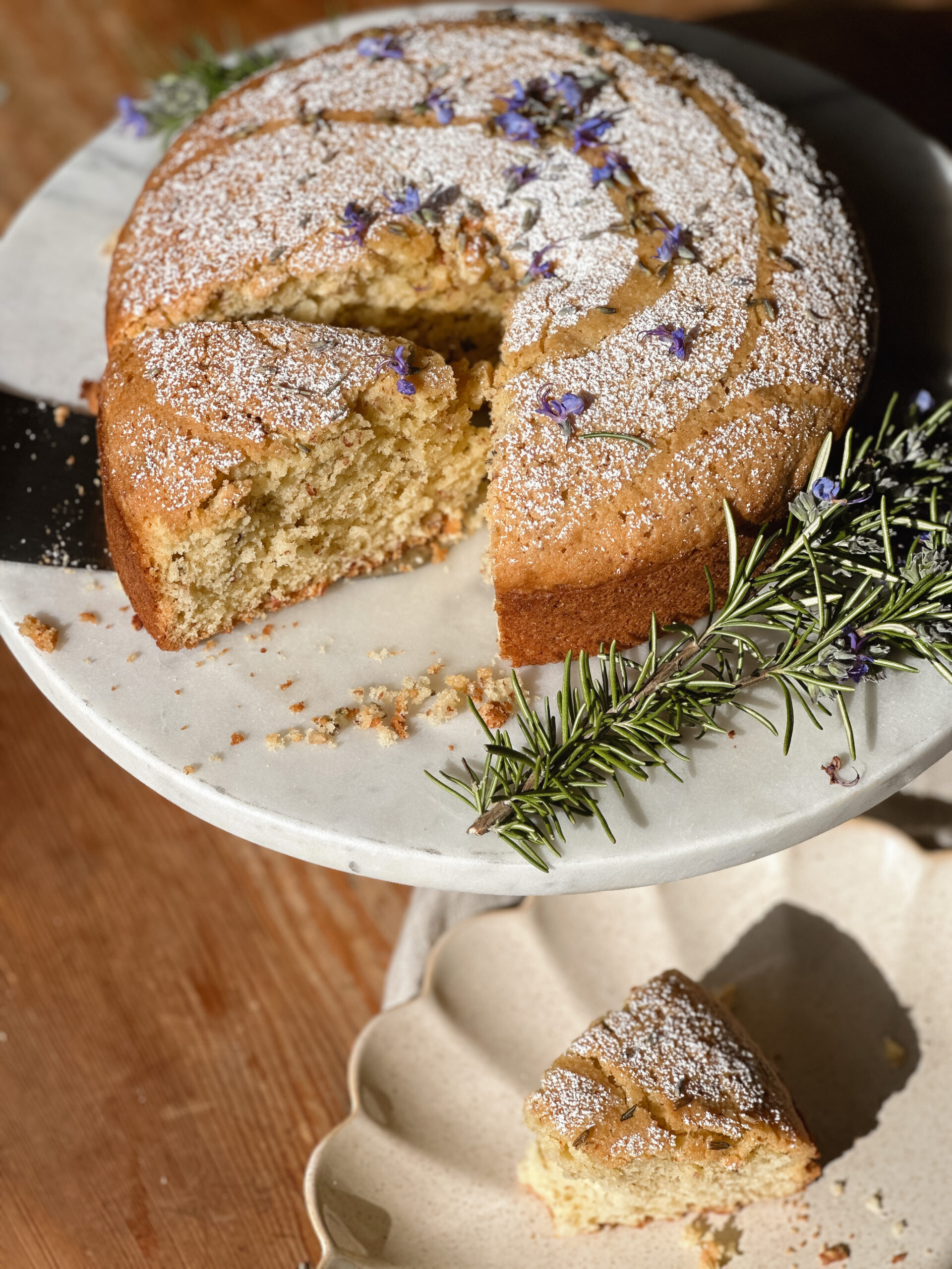 This sweet but not too sweet cake is such a joy. It’s a whisper of late summer in Italy, its fragrant, subtle, light, a perfect after lunch delight or just a paring with afternoon tea. You can taste the floral lavender but it’s not too overpowering. A little goes a long way.