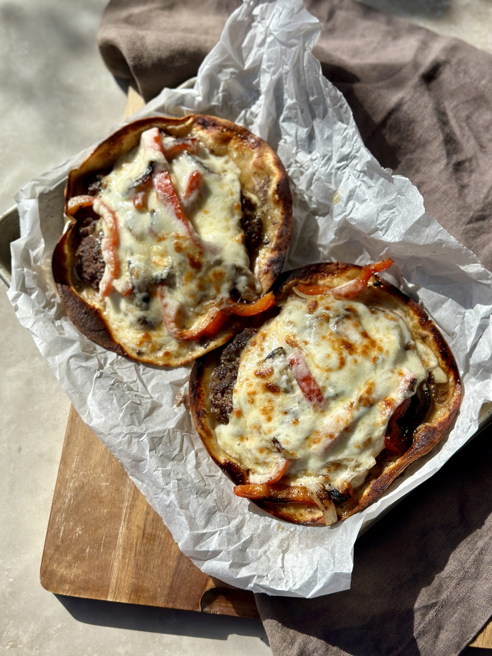 Is it a sandwich, a taco or a burger? It may be a little of each but you can be the judge of my Philly Cheesesteak Smash Burger Tacos. Sometimes I wonder, are there any truly original ideas left in the world? Whether in art, food, fashion, etc… the pursuit of an authentic, uncharted idea is what keeps us interested, invested, and inspired. So, you can imagine my excitement when I began brainstorming smash-able fare. Now, I am not saying I am the first to do this variation, but I do feel a bit like a pioneer on the forefront of mashup recipes and indeed, the smash burger taco.