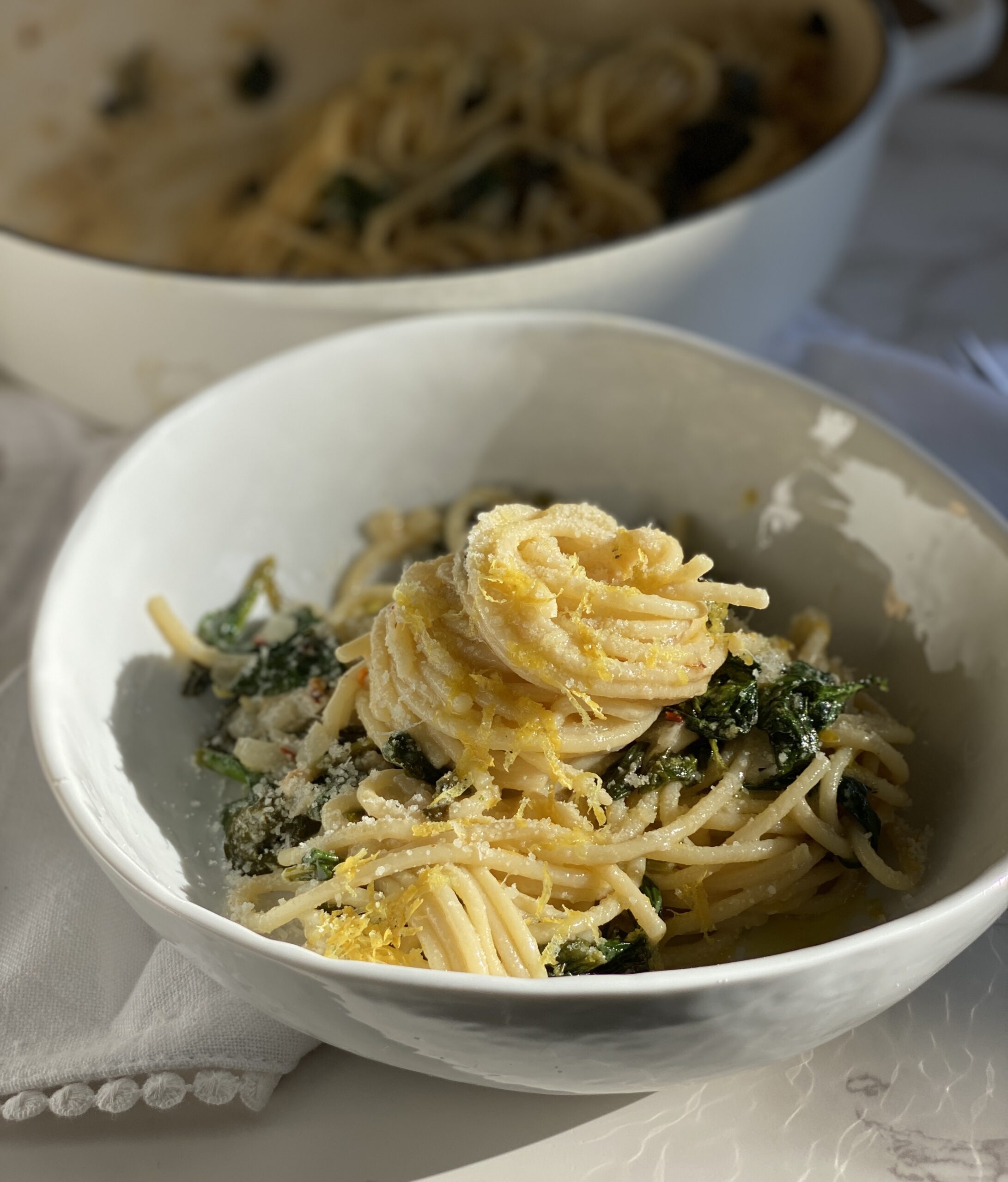 - Now, you can plate the pasta, topping it with the remaining lemon zest, a drizzle of olive oil and more parmesan cheese. If you’re a lemon fanatic like me, add an extra squeeze over the top.
